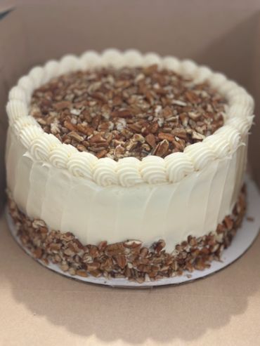Moist, spiced cake made with grated carrots, which add natural sweetness and a soft texture. Walnuts or pecans are included for added flavor and crunch.